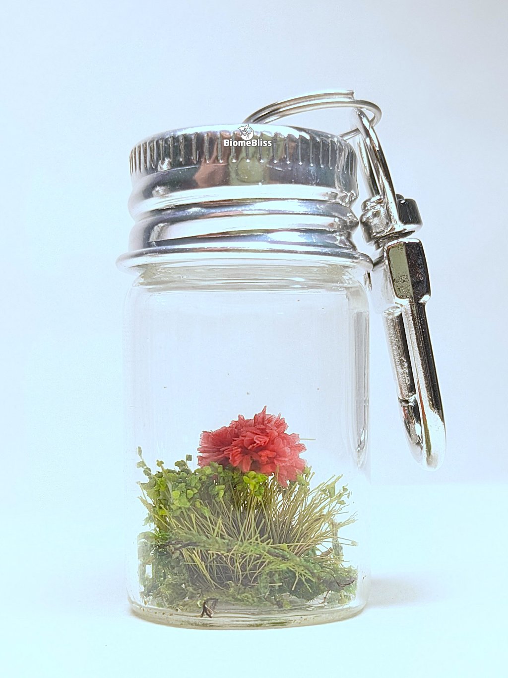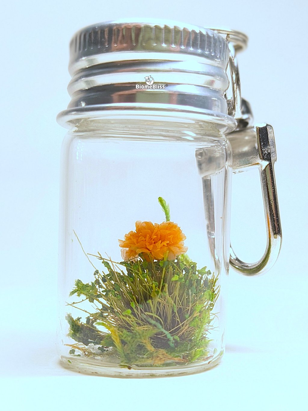 V sklenenej kapsule (výška 4 cm, priemer 2 cm) sa ukrýva stabilizovaný mach, a drobné kvety rôznej farby, ktorý nepotrebuje žiadnu starostlivosť – zostáva svieži a zelený navždy.